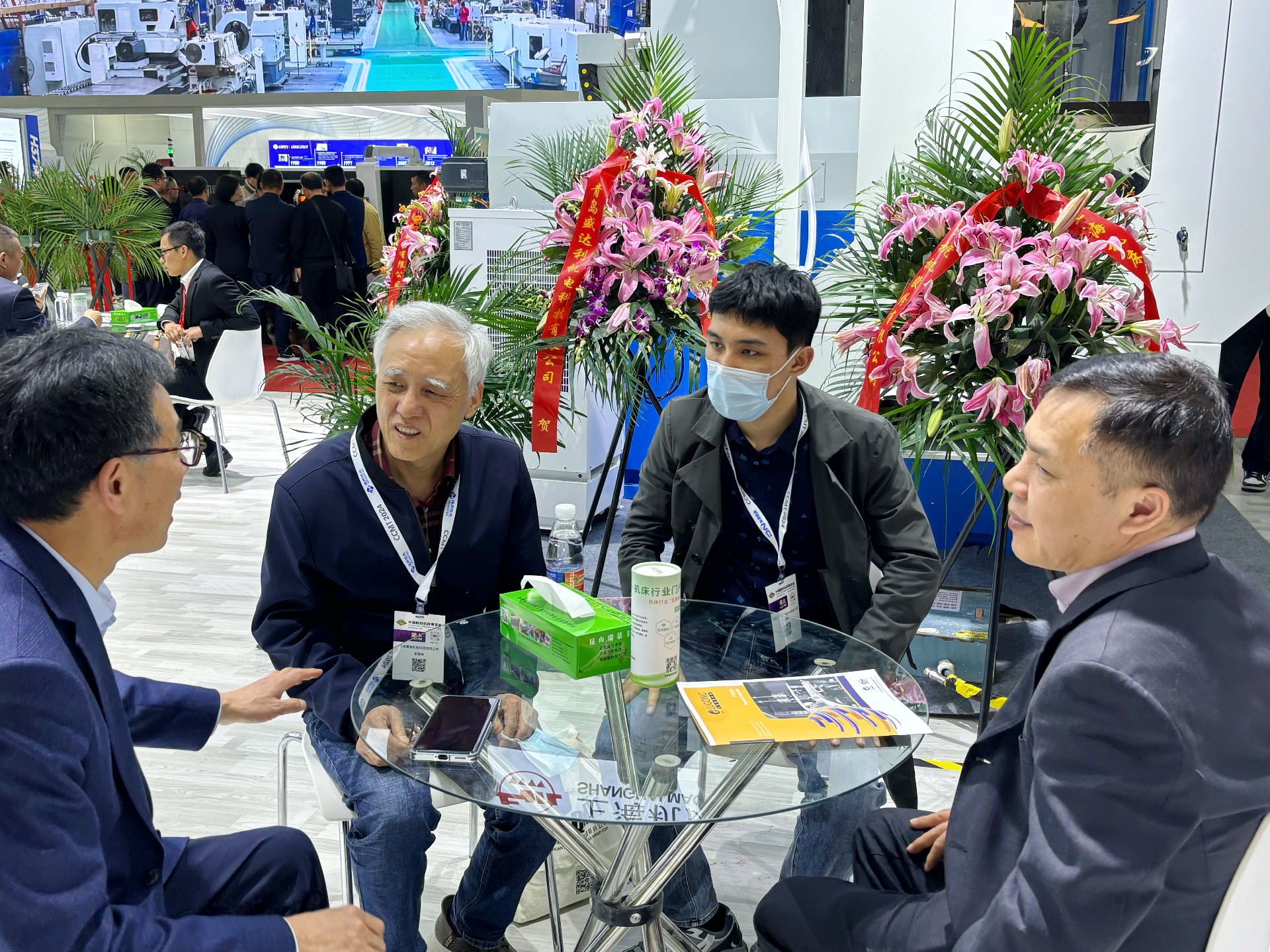 4月9日上午,北一大隈總經(jīng)理北河勝義、北一大隈副總經(jīng)理李金勇到訪杭機股份展臺,與杭機股份副董事長孫益民,總經(jīng)理金正鋼,常務副總經(jīng)理孫冬平交流探討。