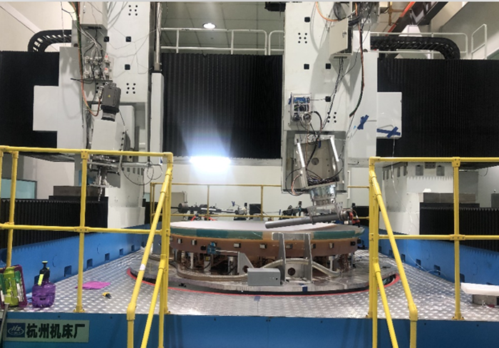 浙江杭機股份有限公司(簡稱“杭機股份”)研發(fā)的大口徑光學元件超聲銑磨拋成套裝備,采用橋式框架移動式結構布局,具有高剛性、高精度及強大的多手段揉合功能,配置超精密閉式靜壓回轉工作臺,可自由統(tǒng)配超精密靜壓主軸、超聲刀柄、磨拋頭、應力盤、磁流變組合及搖臂式輪廓度儀等關鍵部件,設備配置有尋邊定位系統(tǒng),可快速定位光學元件坐標,提高工作效率。設備可對3米級光學元件進行超精密銑磨加工、多自由度快速研拋及高精度測量,完成光學元件磨削、研拋、精拋、檢測、確定性修形的全部加工工藝。